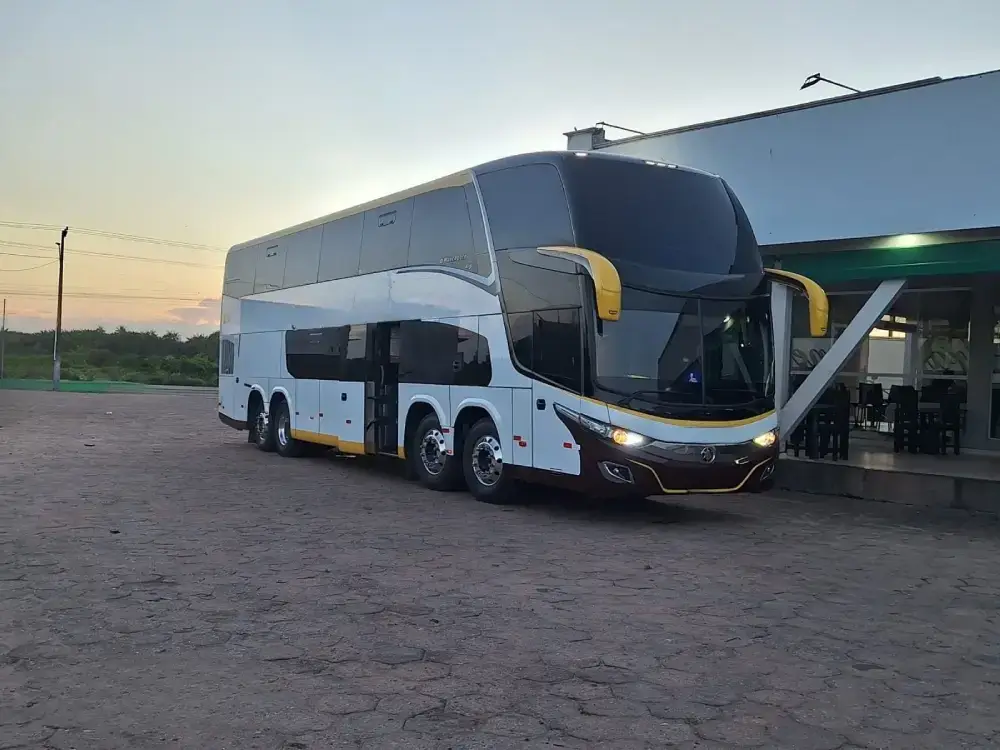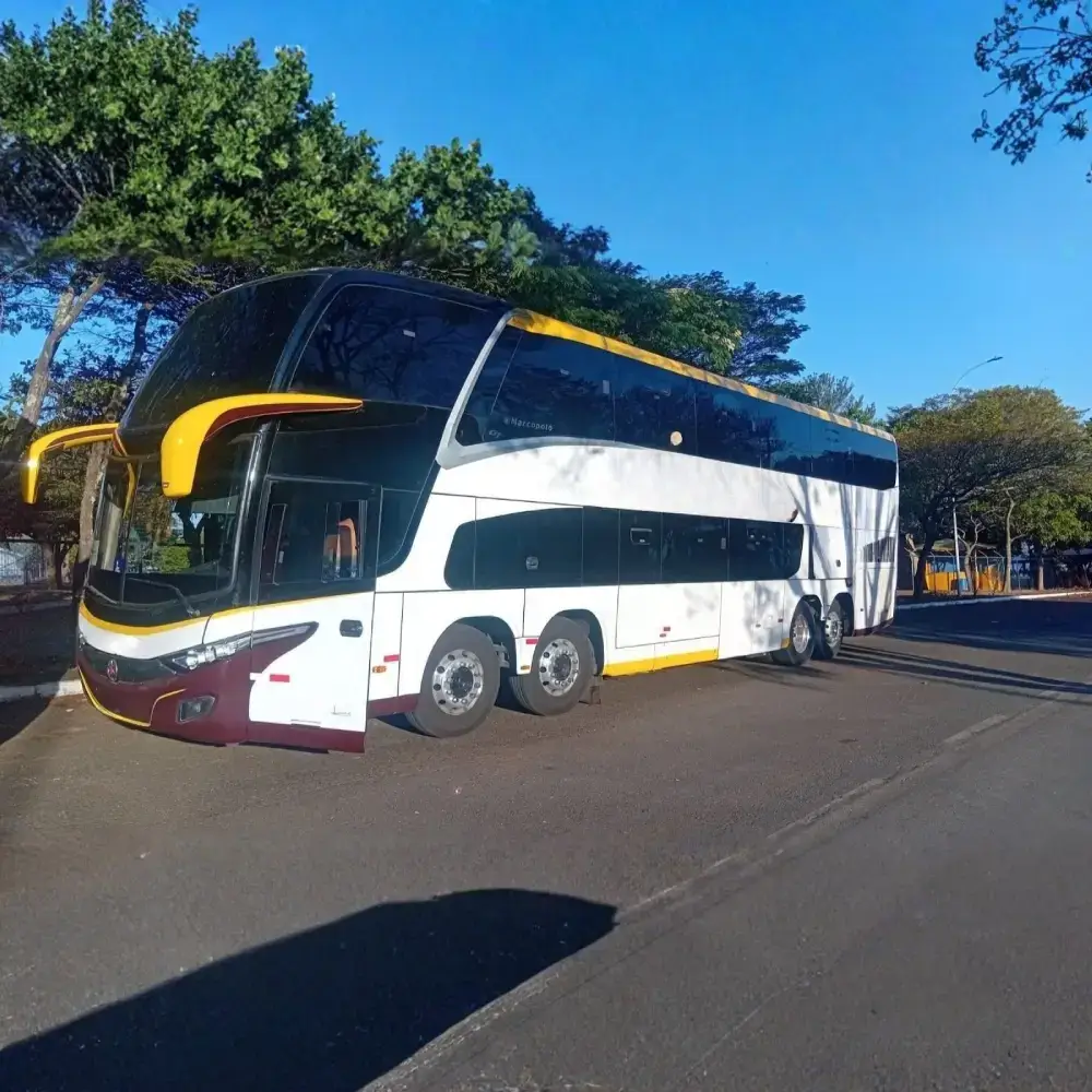 M BENZ – DD – 2015 – RF. 7189 R$950.000,00 CARACTERÍSTICAS DO VEÍCULO: – 2015 – DD MARCOPOLO – M BENZ O500 RSD – CÂMBIO MANUAL – RODAS DE FERRO – WC – 57 LUGARES – PORTA NA FRENTE – JANELAS VIDRO COLADO – AR CONDICIONADO – COMPLETO Valor: R$ 950.000